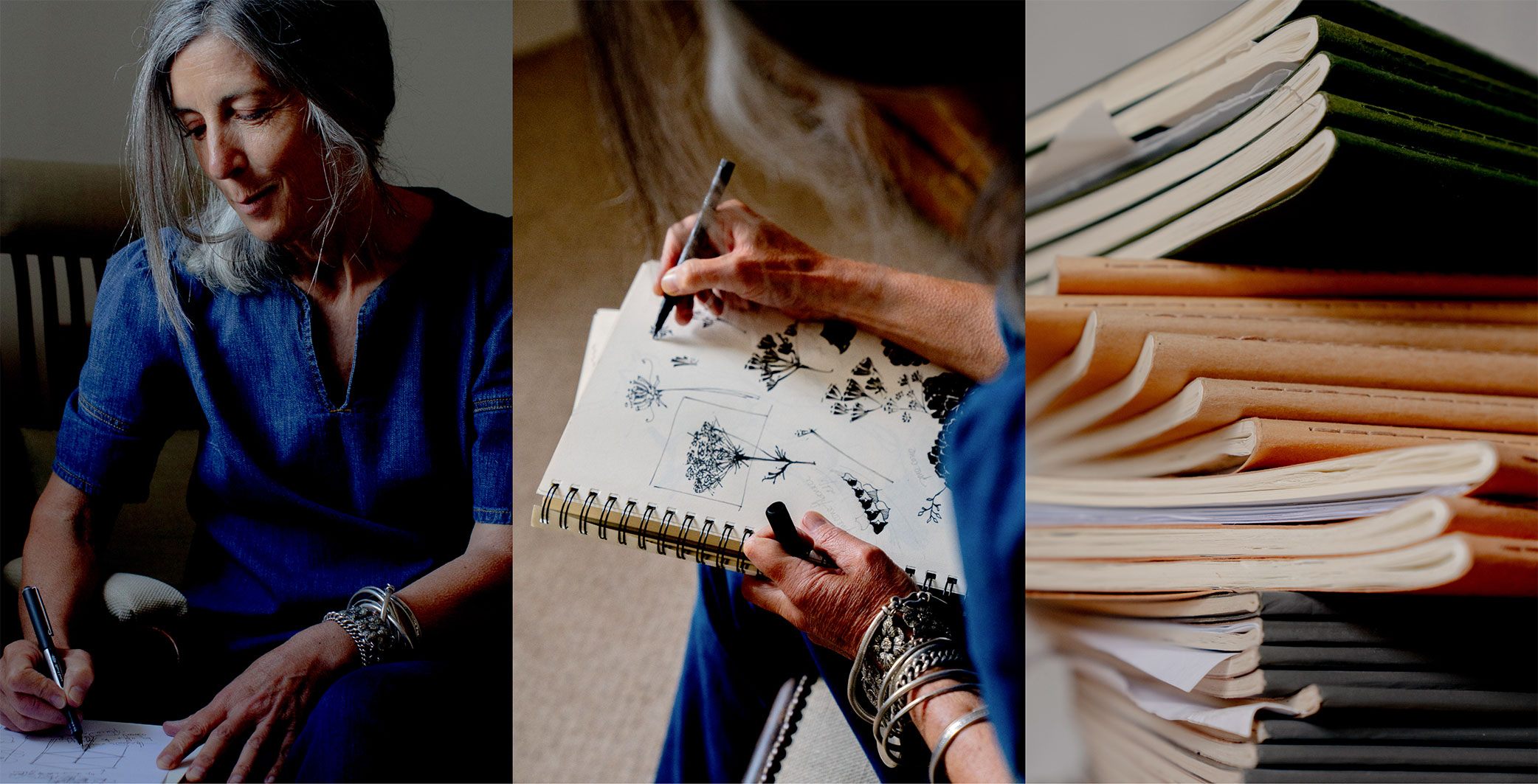 My sketchbooks are shelved keepsakes, a library overflowing with doodles and chatter; rich with nuanced ideas and original perspectives. Each book a sacred place of uninterrupted purist thinking where the characteristic charm of fluid mark making seduces, delights and intrigues.